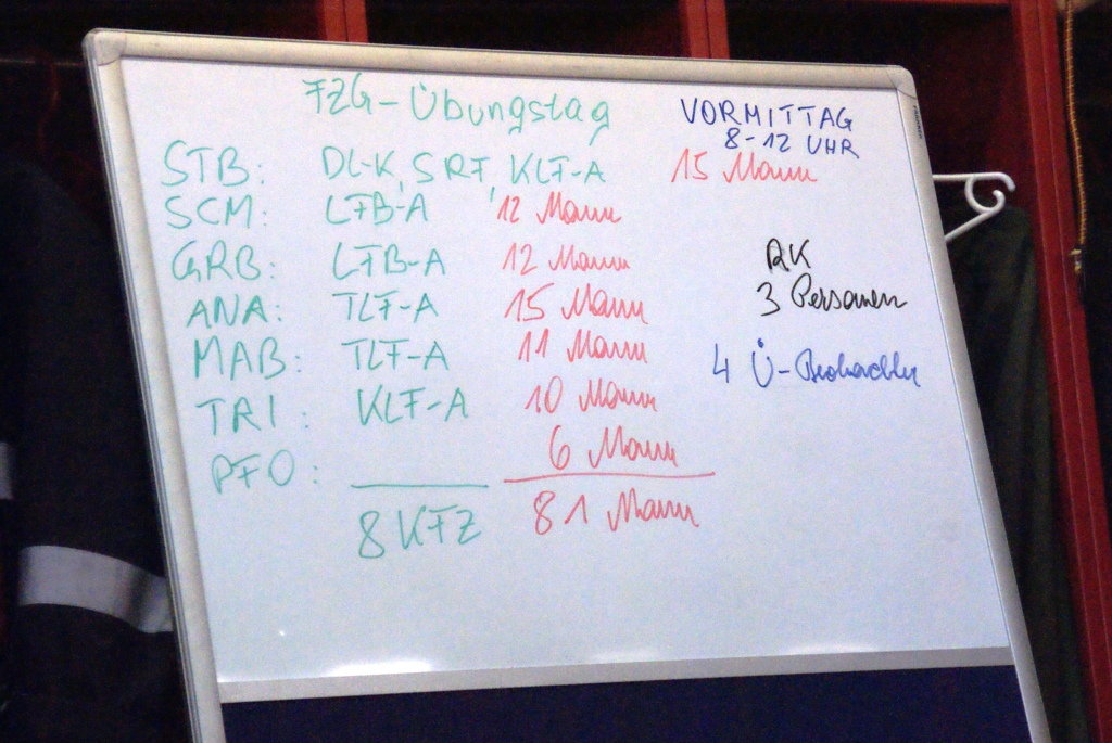Um die Übungseinsätze koordinieren zu können, wurde der Abschnitt geteilt und je 6 Feuerwehren für den Vormittag bzw. Nachmittag eingeteilt.