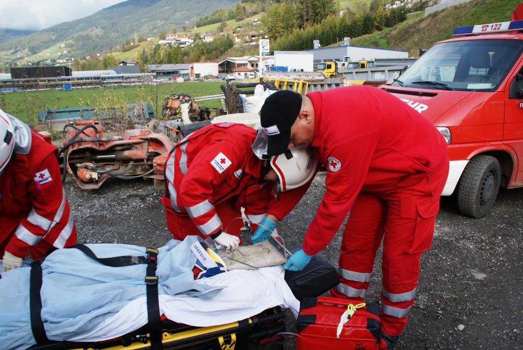 3 Rettungssanitäter mit einem RTW
