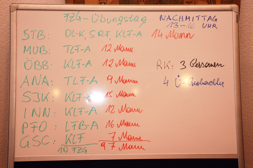 Um 08.00 Uhr wurde nach einer kurzen Einweisung gestartet und in der Folge insgesamt 31 Übungseinsätze bei 4 verschiedenen Lagen gefahren.