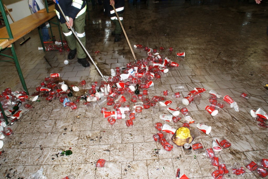 Zusammenräumen nach dem Ball in den frühen Morgenstunden: