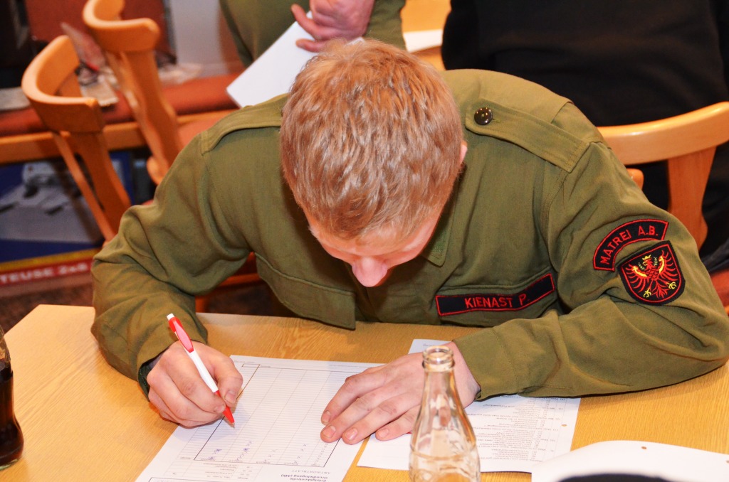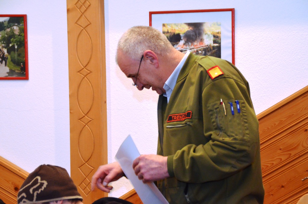 Abschlussprüfung nach der Ortsausbildung im Gerätehaus Pfons