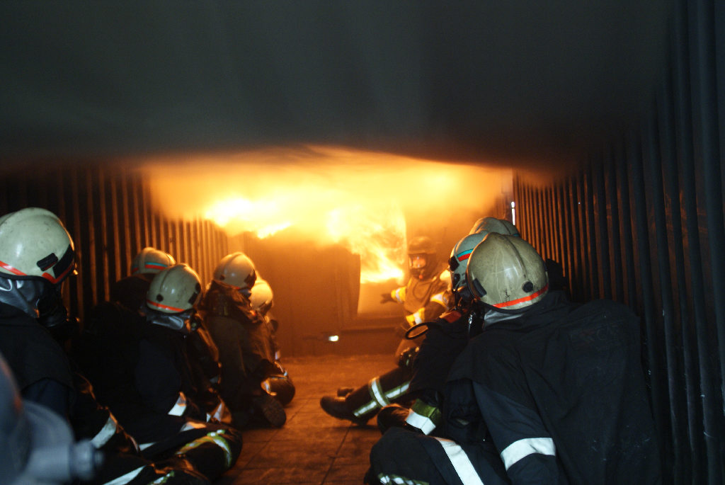 Nach der gemeinsamen Ankunft am Übungsgelände erhielten wir im Lehrsaal von unserem „Chefausbildner“ einen Unterricht über Brände in geschlossenen Räumen, dem thermischen Gleichgewicht, dem brennstoff- oder sauerstoffkontrollierten Brand bis hin zur Rauchgasdurchzündung und der Rauchgasexplosion. Die theoretischen Kenntnisse wurden dann mit der Simulationsbox in der Praxis vorgeführt und vertieft.