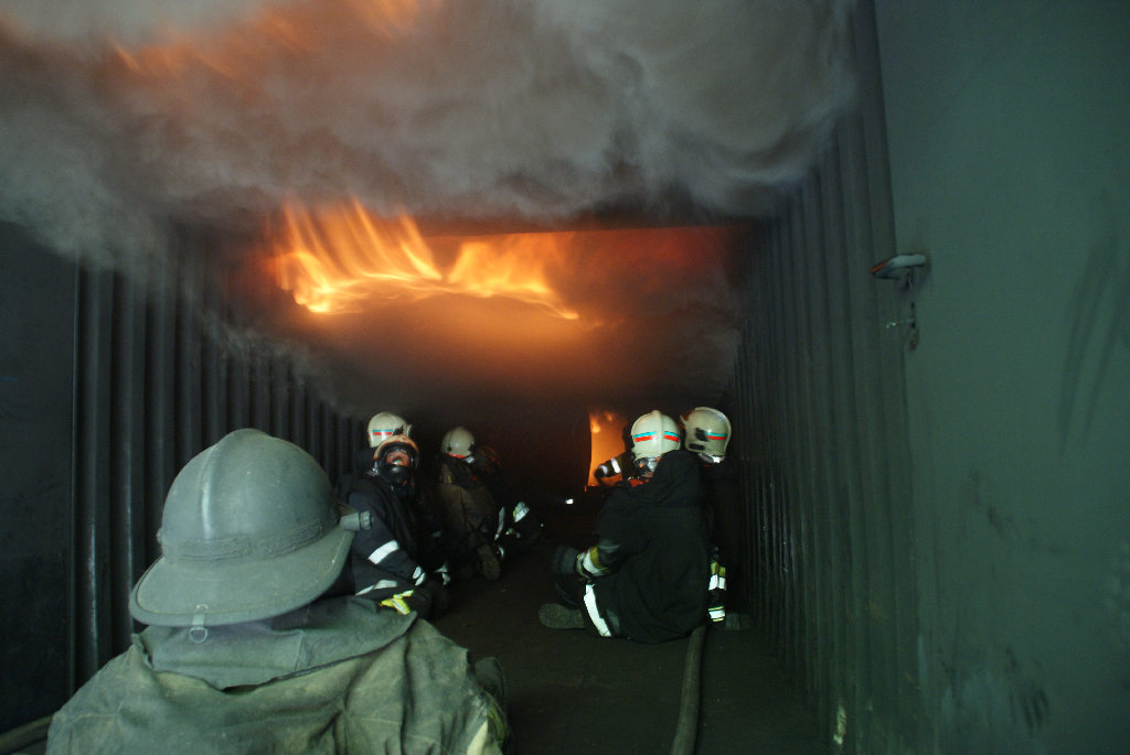 Bei diesem Training wurden uns die Zeichen einer Rauchgasdurchzündung vor Augen geführt und über unseren Köpfen zog in der Folge die „Flammenwalze“ hinweg. Am Ende dieses Durchganges versuchten dann einige Kameraden unter Anweisung der Tainer eine Rauchgasdurchzündung zu blocken.