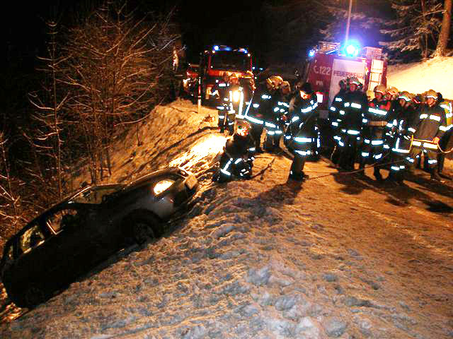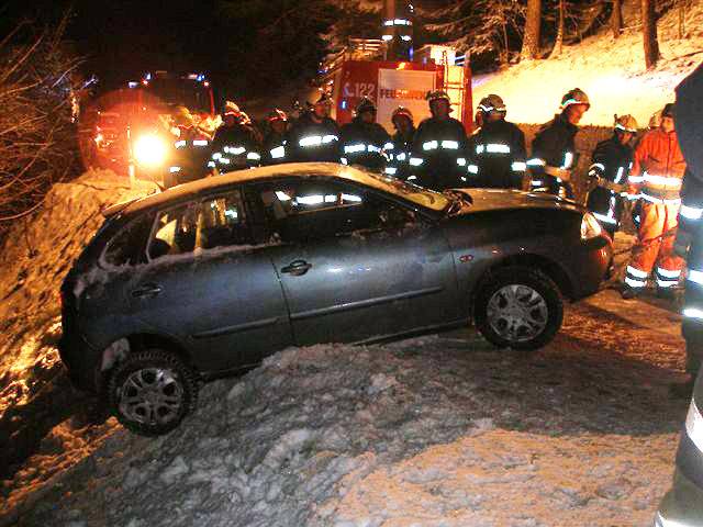 Am Sonntag, den 04.01.2009 wurden die Feuerwehren Ellbögen und Pfons um 01.23 Uhr über die Leitstelle Tirol zu einem Einsatz gerufen. Ein PKW ist im Gemeindegebiet von Pfons, nach der Fraktion Gedeir von der Ellbögener Landesstraße L 38 aus bisher noch unbekannter Ursache abgestürzt. Beim Eintreffen der Einsatzkräfte befanden sich die unverletzten Insassen noch im ca. 50 m abgestürzten Fahrzeug, das glücklicherweise durch eine Baumgruppe abgefangen wurde. Das Fahrzeug wurde in Zusammenarbeit mit einem Abschleppdienst geborgen.