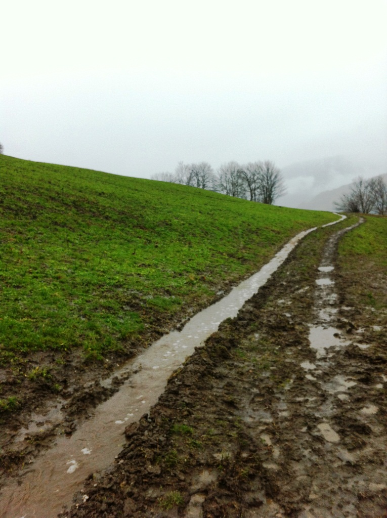Durch die starken Regenfälle sammelte sich an einigen Hängen Oberflächenwasser, welches sich unkontrolliert über seinen Weg suchte.